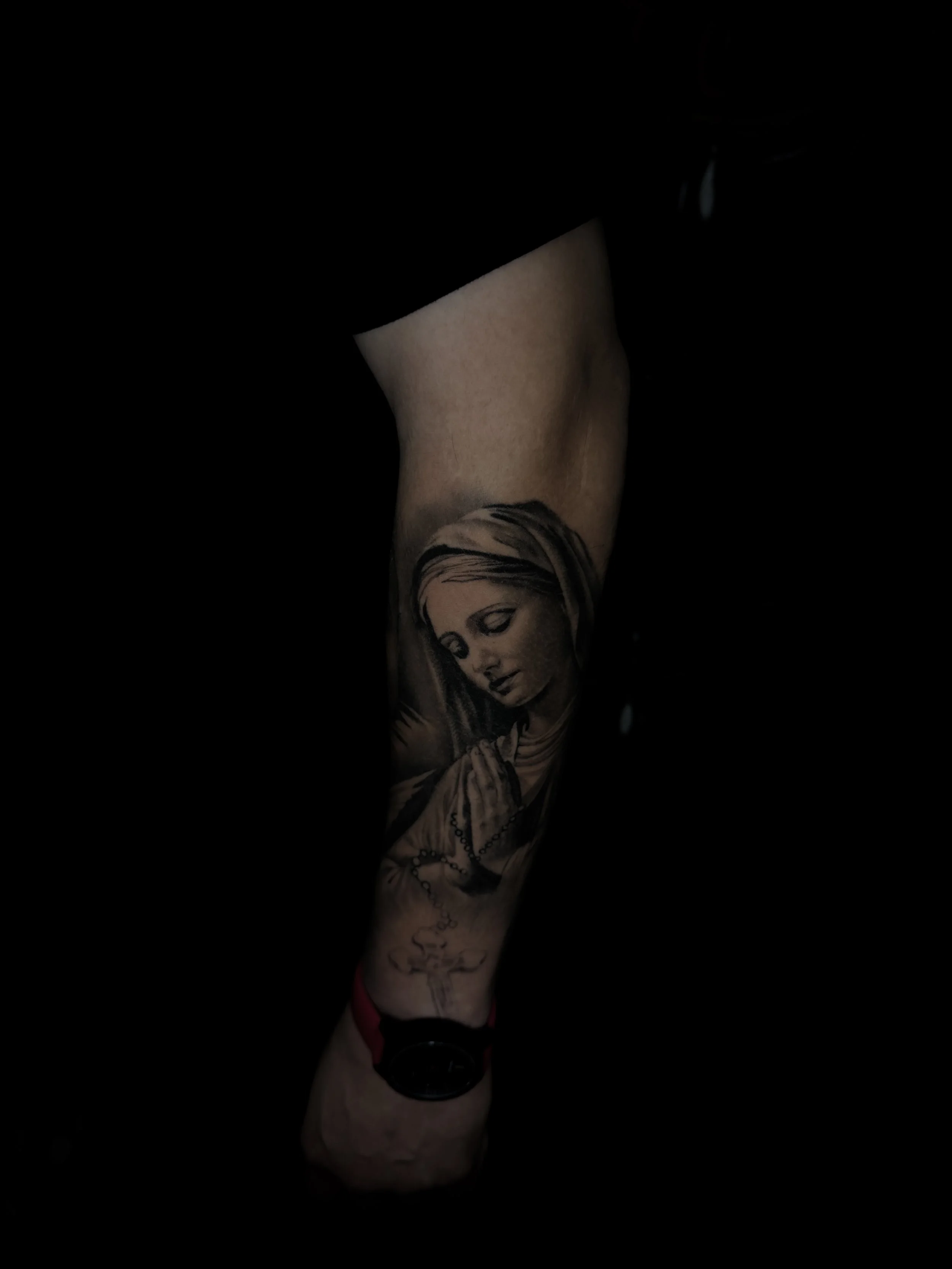 Black & Grey Religious Tattoo Done By Daniel Rodriguez In Dallas Texas